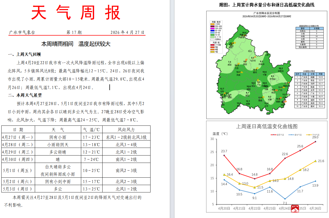 本周晴雨相间 温度起伏较大