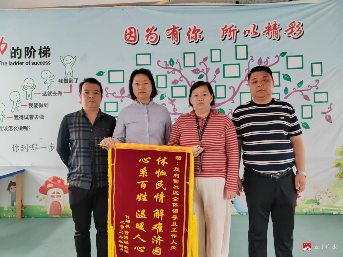 近日,应山街道胜利街社区居民付某在社区工作人员的指导下,成功办理低保申请,有效解决了家庭生活困难。付某深受感动,专程向社区赠送锦旗,感谢真情帮扶与暖心服务。